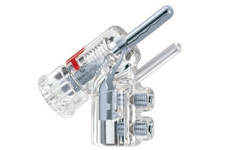 Referenční banánkový WBT konektor  vyrobený z čistého stříbra, s platinovým povrchem. Technologie Nextgen™.